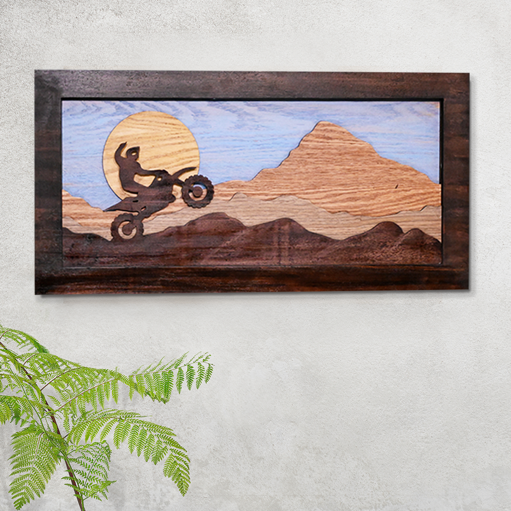 Note: A slight bend may naturally develop in this multi-layered wood artwork over time due to the inherent movement of wood as it interacts with humidity and temperature changes.